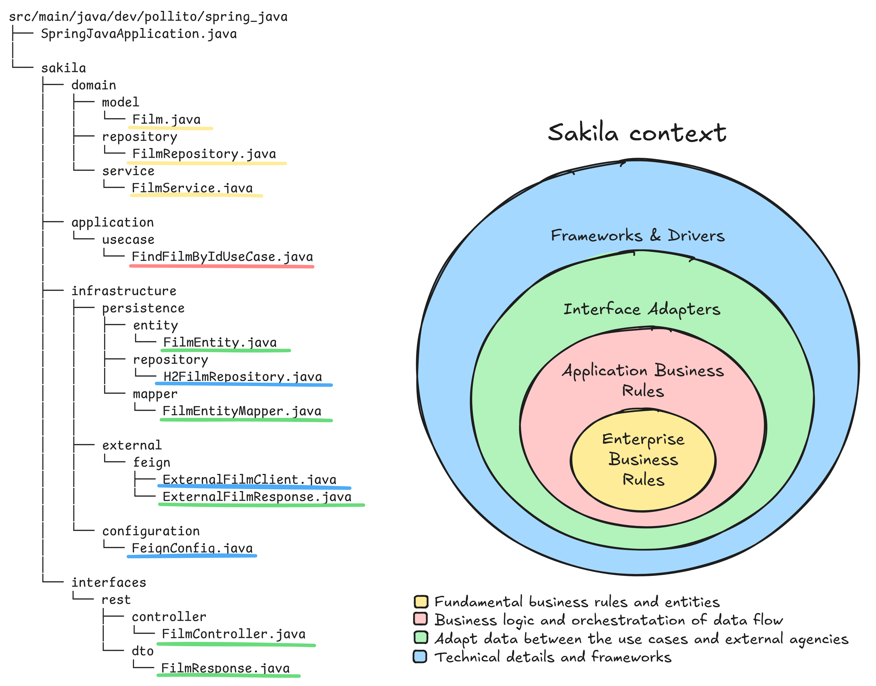 Toda la lógica de "Sakila" va a existir dentro del paquete sakila, representando un contexto acotado.