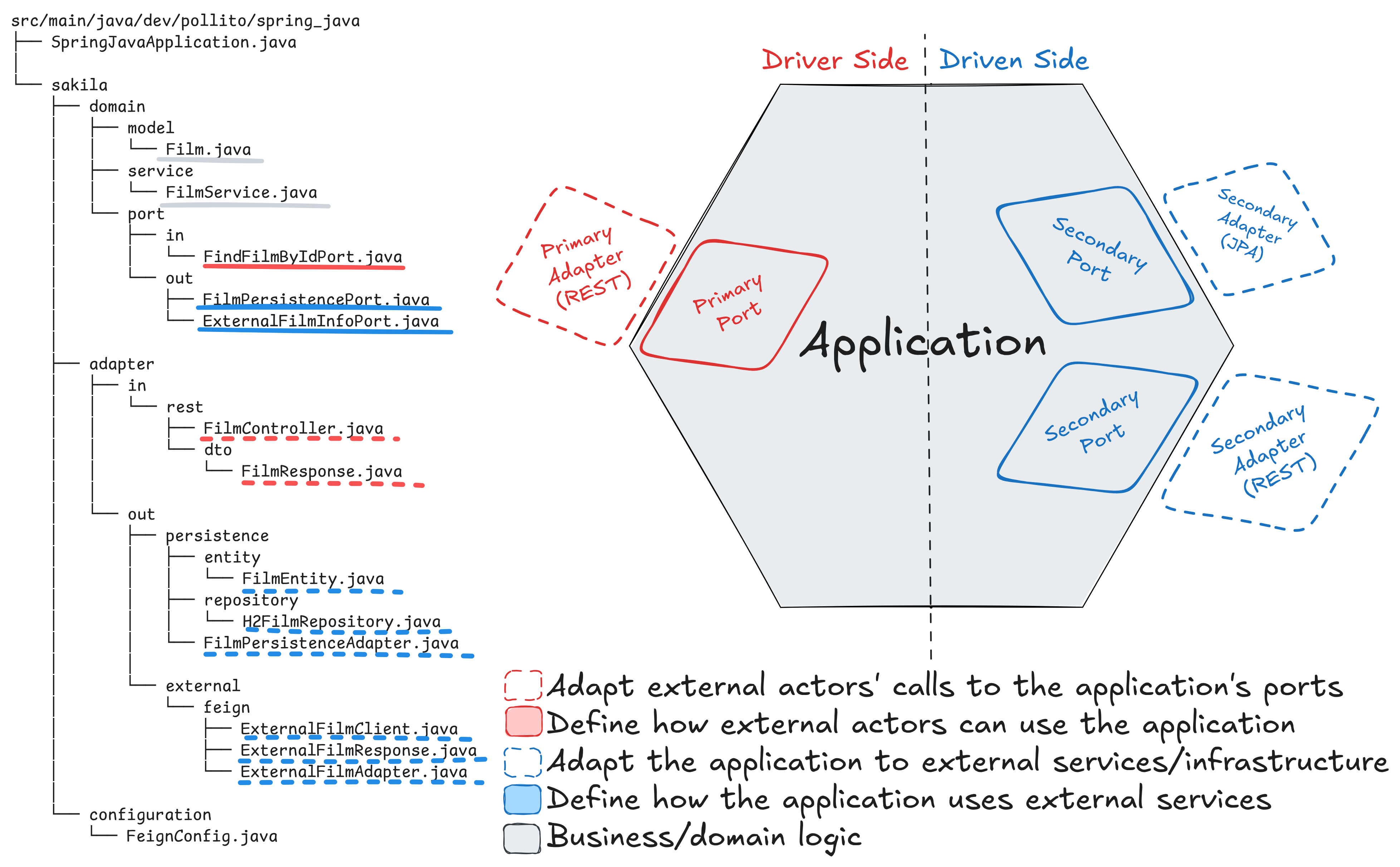 - Los puertos (interfaces) aseguran acoplamiento flexible entre estas capas, haciendo la aplicación más mantenible y testeable.