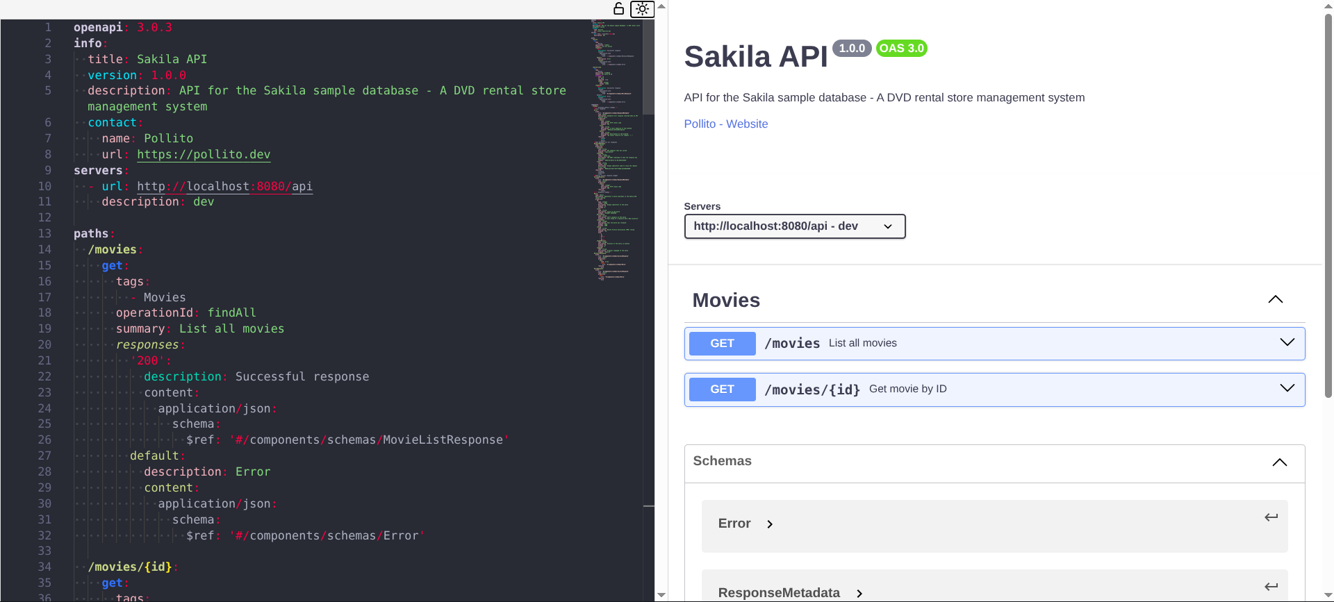For better visualization you can copy-paste the OpenAPI Specification YAML file from the codebase into Swagger Editor or use OpenAPI (Swagger) Editor in IntelliJ IDEA.